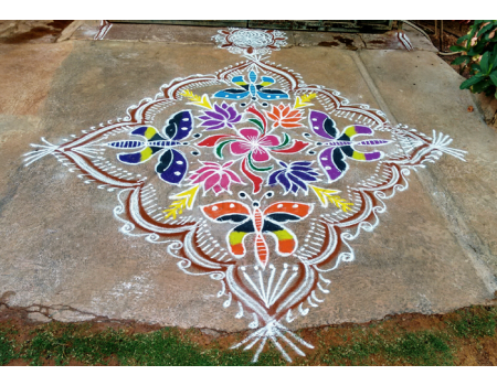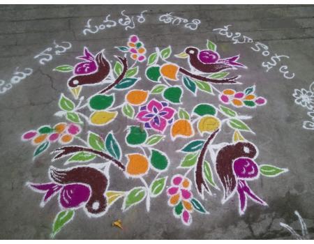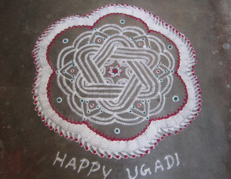Ugadi (also known as Yugadi), is a major festival in Karnataka, Telangana, Andhra Pradesh. It is celebrated as the New Year's Day, as per the Hindu calendar. It is observed in these regions on the first day of the Hindu lunisolar calendar month of Chaitra. Most house entrances are decorated with colorful Rangoli patterns because it’s believed that the new year will be as bright and colorful like the various colors of Rangoli.